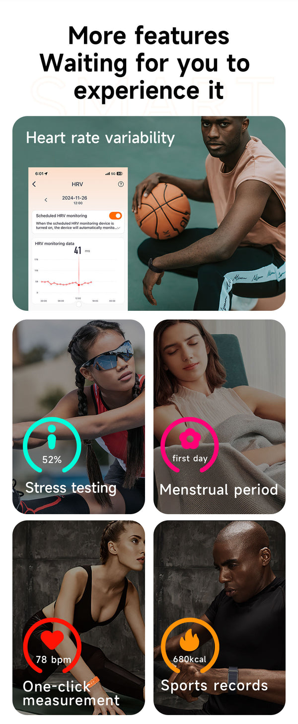 - Presión Arterial: Vigila tu salud cardiovascular de forma constante y no invasiva.